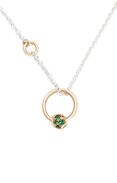 Collar de un gramo de oro de 18 kt con Pavé de Tsavoritas y con cadena de oro o de plata de 60cm de largo y autoajustable.